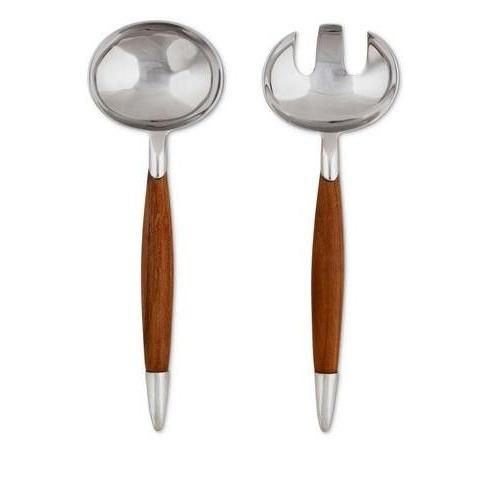 ชุดที่ตักสลัดโลหะด้ามไม้ดีไซน์สวยงาม ขัดเงาสีเงิน สำหรับงานแต่งงาน โต๊ะอาหารค่ำ ชุดที่ตักสลัดตกแต่ง