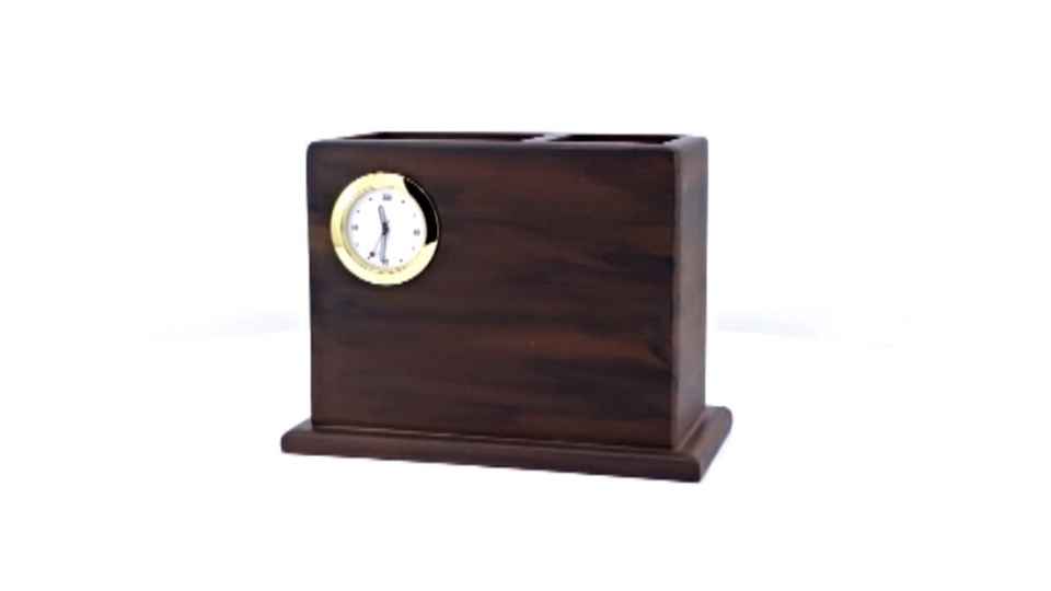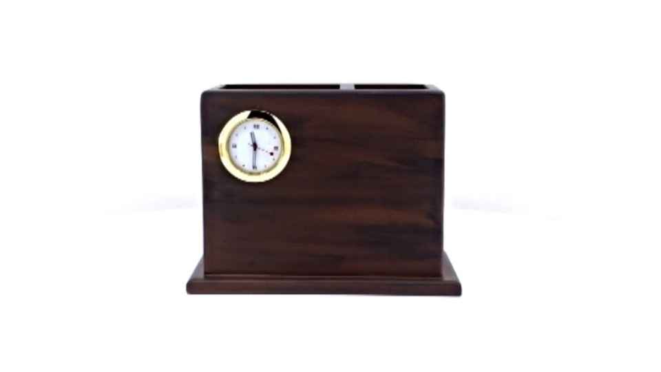 ที่จัดระเบียบโต๊ะทำงานไม้พร้อมนาฬิกาและที่ใส่ปากกาคู่ ที่จัดระเบียบโต๊ะสำนักงานระดับพรีเมียมพร้อมกรอบรูป ของขวัญสำหรับองค์กร