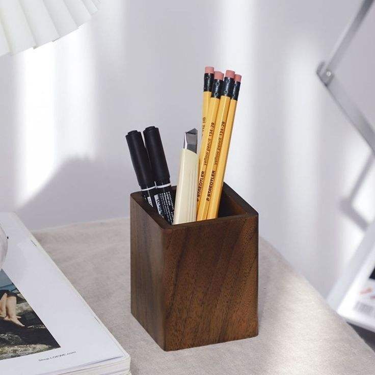 ที่ใส่ปากกาไม้สำหรับวางบนโต๊ะ กล่องจัดระเบียบอุปกรณ์บนโต๊ะ กระถางใส่แปรง
