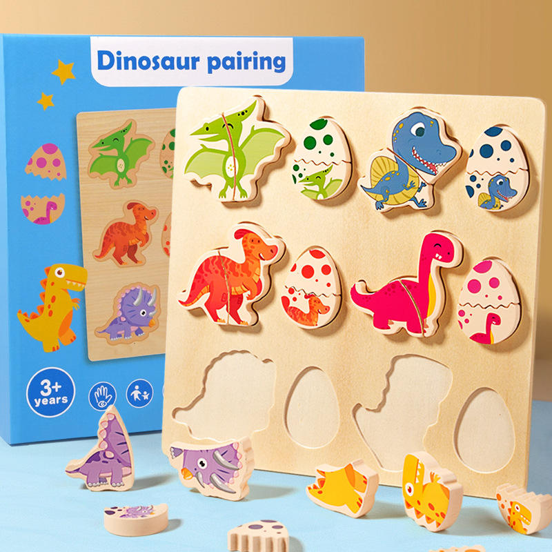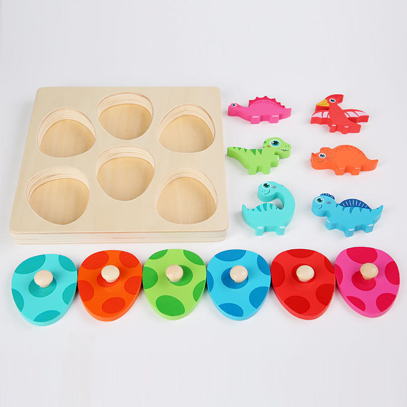 ไดโนเสาร์ไม้จับคู่ไข่ปริศนาก่อนวัยเรียนกิจกรรมการเรียนรู้ของเล่นเพื่อการศึกษาสำหรับเด็กวัยหัดเดินเด็กผู้ชายเด็กผู้หญิง