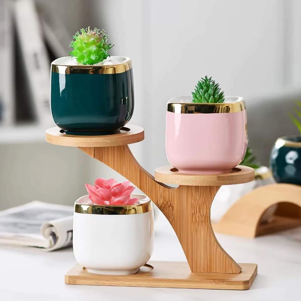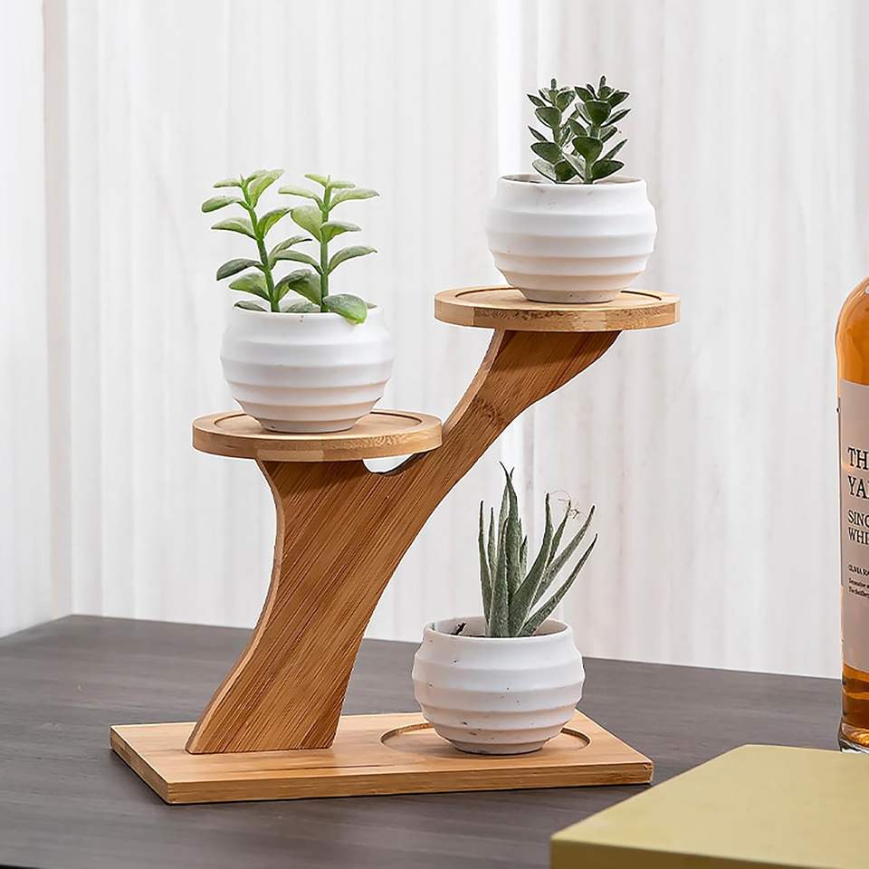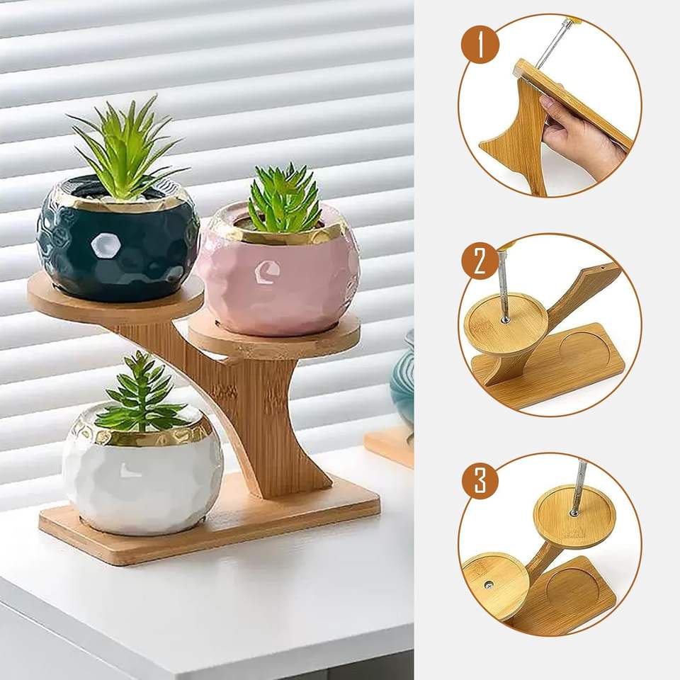 แท่นวางไม้ไผ่สำหรับกระถางต้นไม้ ตกแต่งบ้านและห้อง วางบนโต๊ะ หน้าต่าง ห้องนั่งเล่น