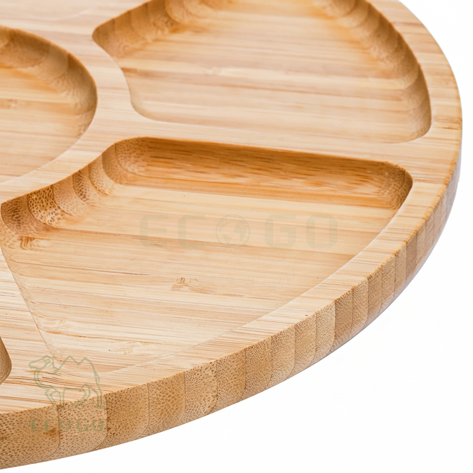 ถาดไม้สำหรับเสิร์ฟแบ่งเป็นช่องชามใส่ผักถาดใส่ขนมขบเคี้ยว7ช่องเคลื่อนย้ายได้