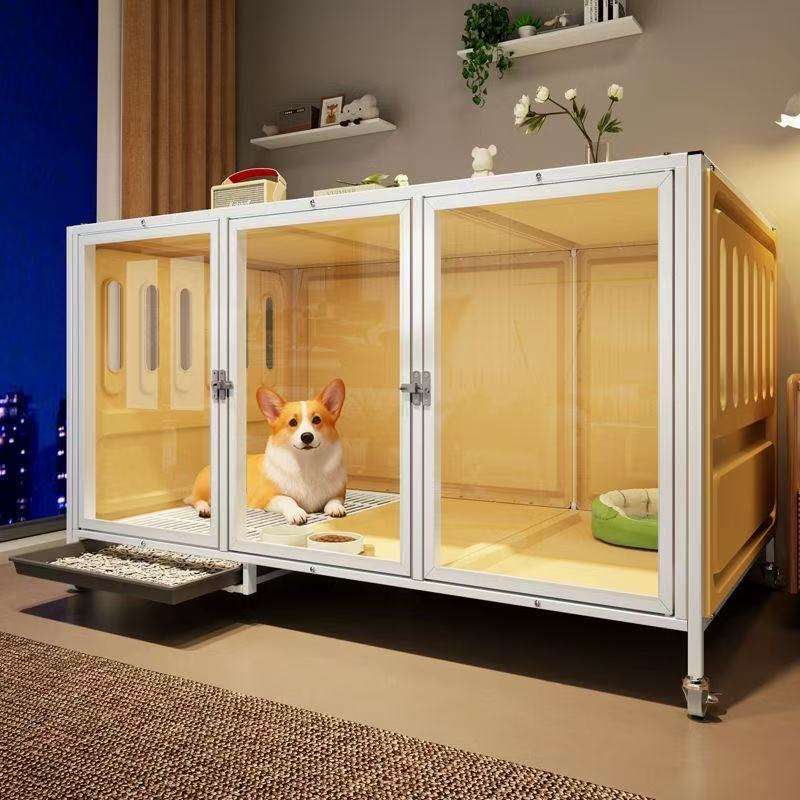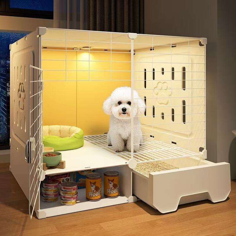 บ้านสุนัขพลาสติกไม้ไผ่พร้อมประตูถอดซักได้-เป็นมิตรกับสิ่งแวดล้อมระบายอากาศได้สไตล์วิลล่าเพื่อการปกป้องที่สะดวกสบาย