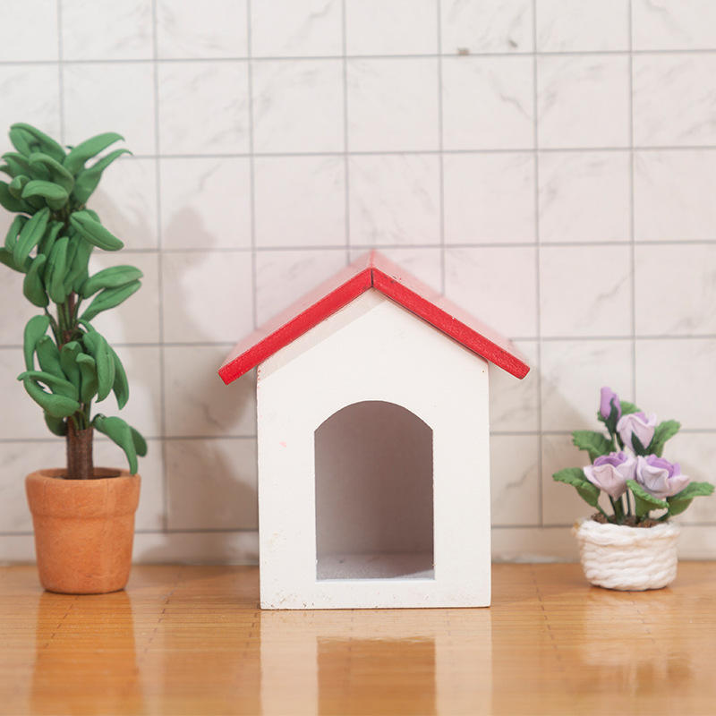 บ้านตุ๊กตาไม้ Hao Chang สีแดงด้านบน ผนังสีขาว ของตกแต่ง DIY ชุดของเล่นประกอบเอง พร้อมฉากบ้านสุนัขขนปุย บรรจุในถุง สำหรับเด็กอายุ 14 ปีขึ้นไป ทั้งเด็กชายและเด็กหญิง