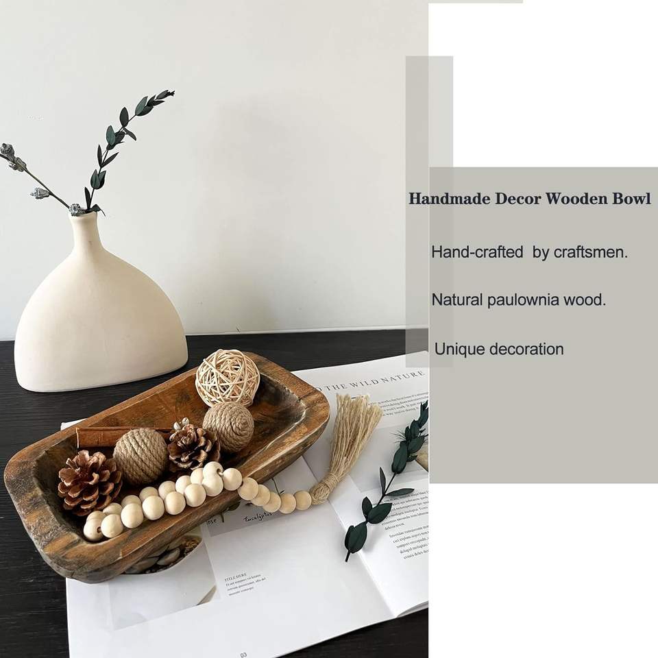 ชามแป้งไม้ตกแต่งชามไม้โบราณแกะสลักด้วยมือของตกแต่งบ้านสำหรับโต๊ะอาหารห้องนั่งเล่นตกแต่งห้องครัว
