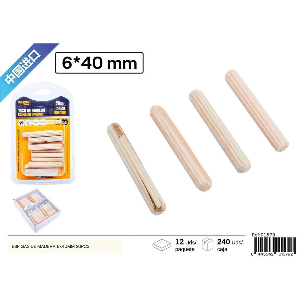 Wooden Dowels 6x40mm 20pcs for Woodworking and Joinery