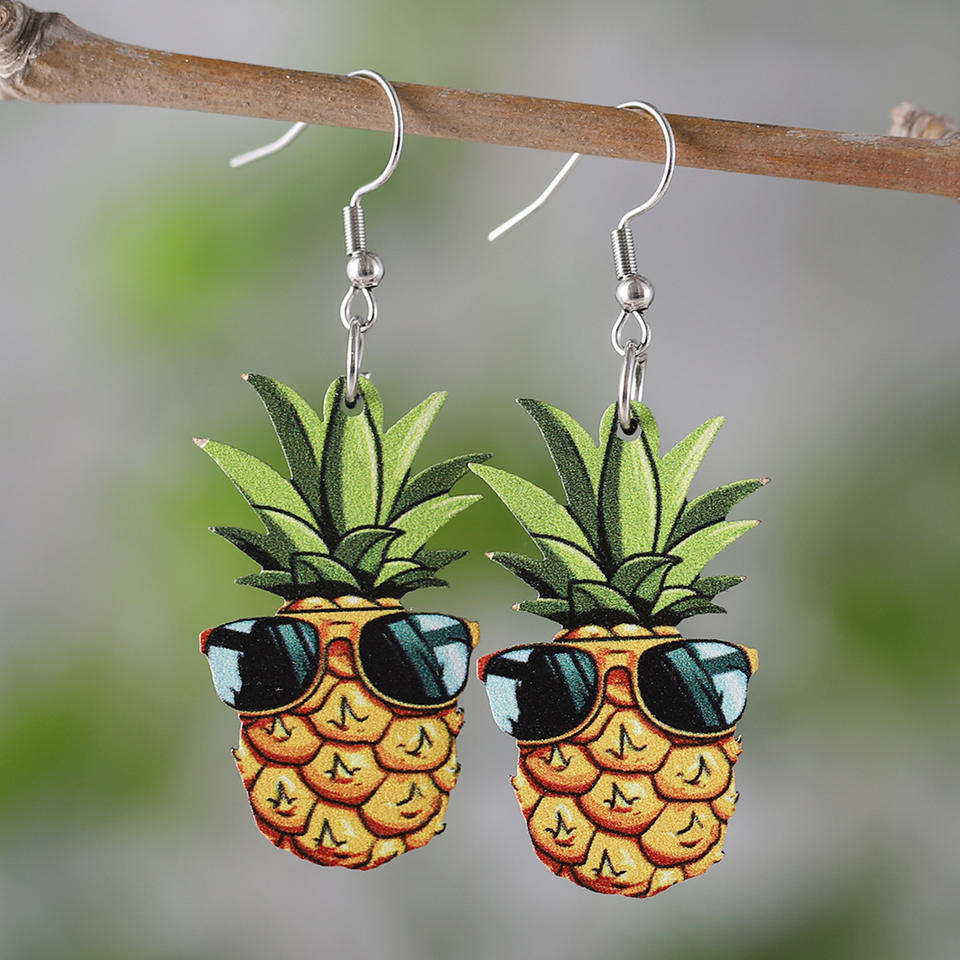 ต่างหูโลหะผสมรูปทรงเรขาคณิตทันสมัย ลายผลไม้ แตงโม เลมอน สับปะรด เชอร์รี่ แบบสองด้าน สำหรับผู้หญิง UIONEN 1098