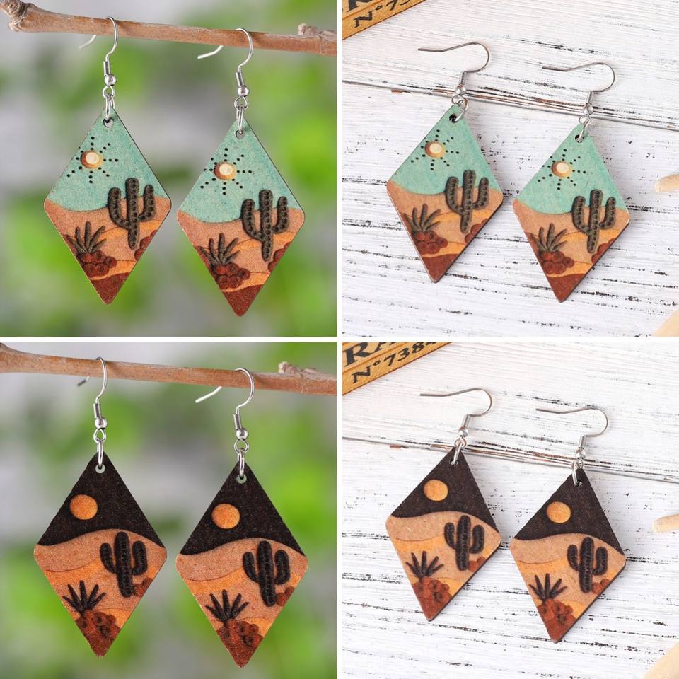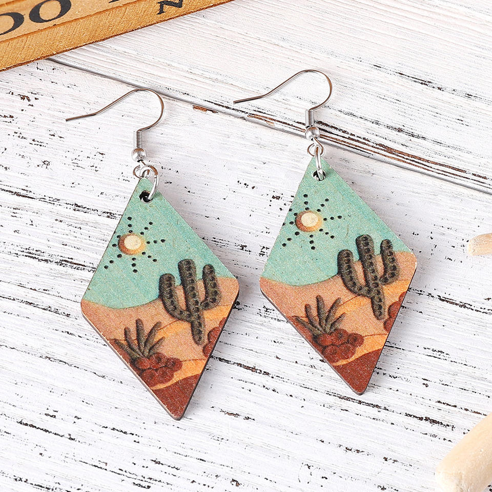 Alloy Trendy Stylish Desert Cactus Geometric Diamond Double Sided Pendant Earrings for Women Hypoallergenic UIONEN 985
