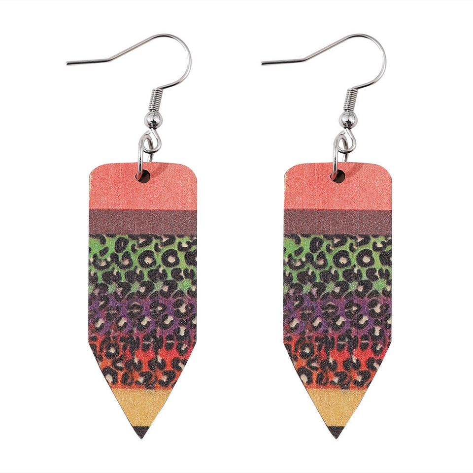 ต่างหูโลหะผสมทรงเรขาคณิตลายเสือดาวสีสันสดใสแบบสองด้าน ของขวัญวันครูสำหรับผู้หญิง UIONEN 1115