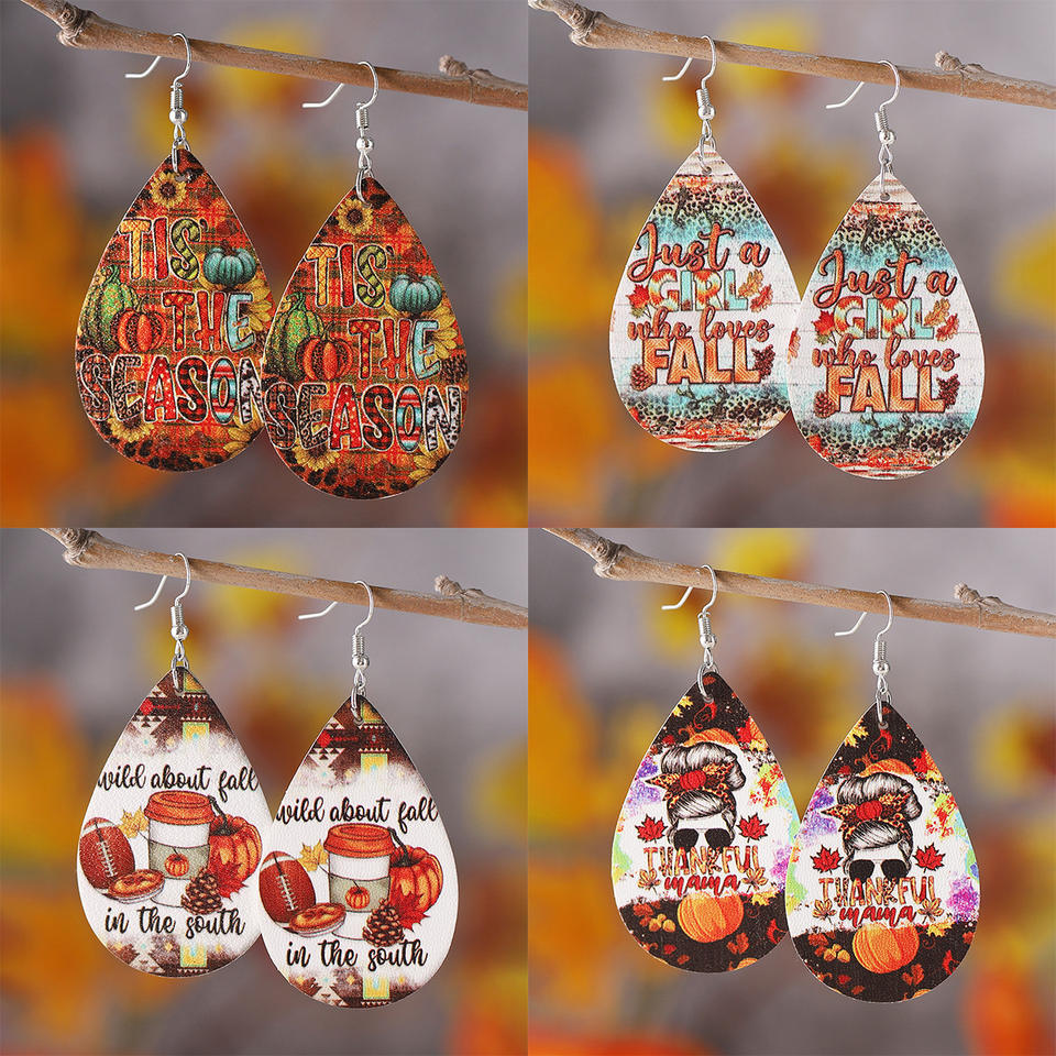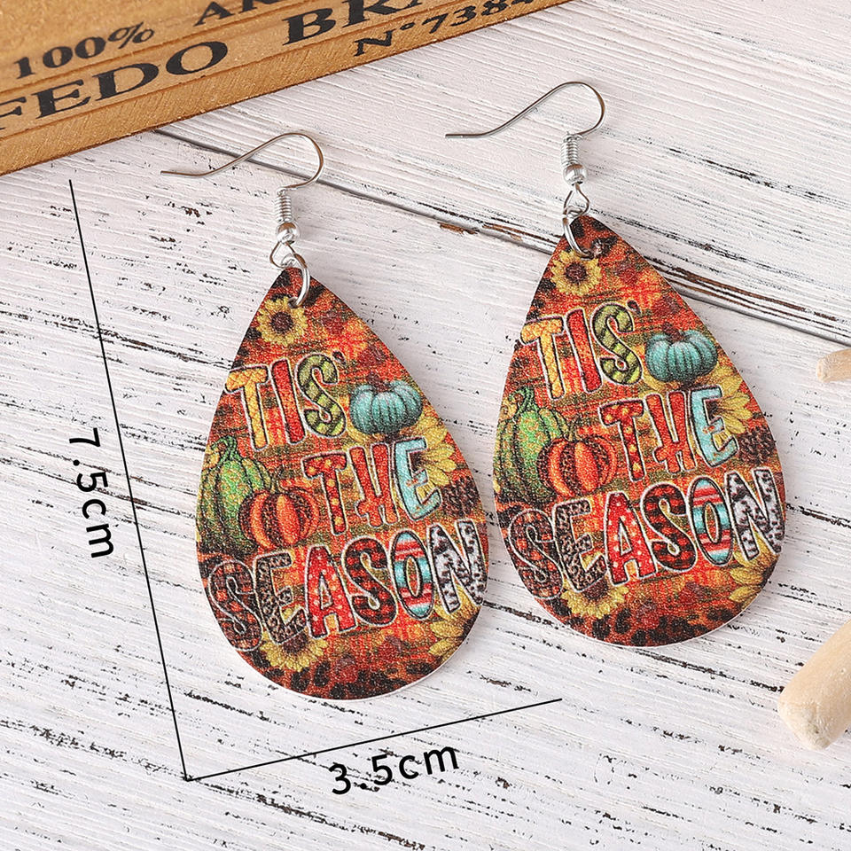 ต่างหูไม้วันขอบคุณพระเจ้าต่างหูจี้รูปฟักทองดอกทานตะวันเสือดาวต่างหูสำหรับผู้หญิง1107