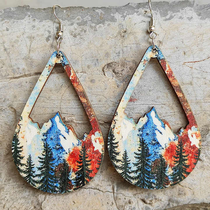 ต่างหูไม้ต่างหูวินเทจป่าไม้ภูเขาต่างหูจี้กลวงลวดลายสีสันสดใสสำหรับผู้หญิง2316