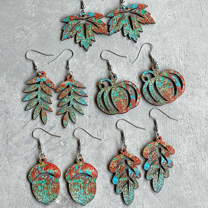 ต่างหูไม้ต่างหูจี้ใบฟักทองแบบวินเทจสำหรับผู้หญิง2340