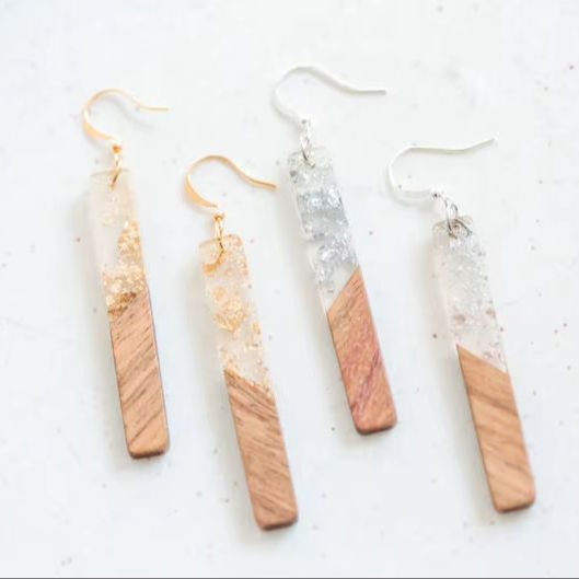 ต่างหูไม้สำหรับผู้หญิงต่างหูไม้น้ำหนักเบาต่างหูอะคริลิคเรซิ่นรูปทรงเรขาคณิต