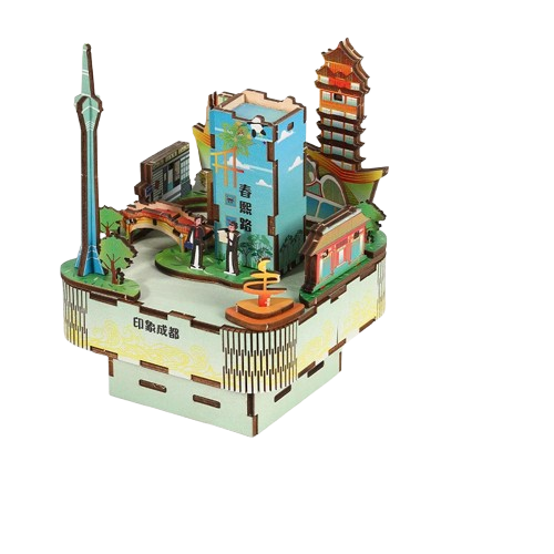color:Music boxes for Kunming, Suzhou, Miao Village, Shanghai, and Chengdu.
