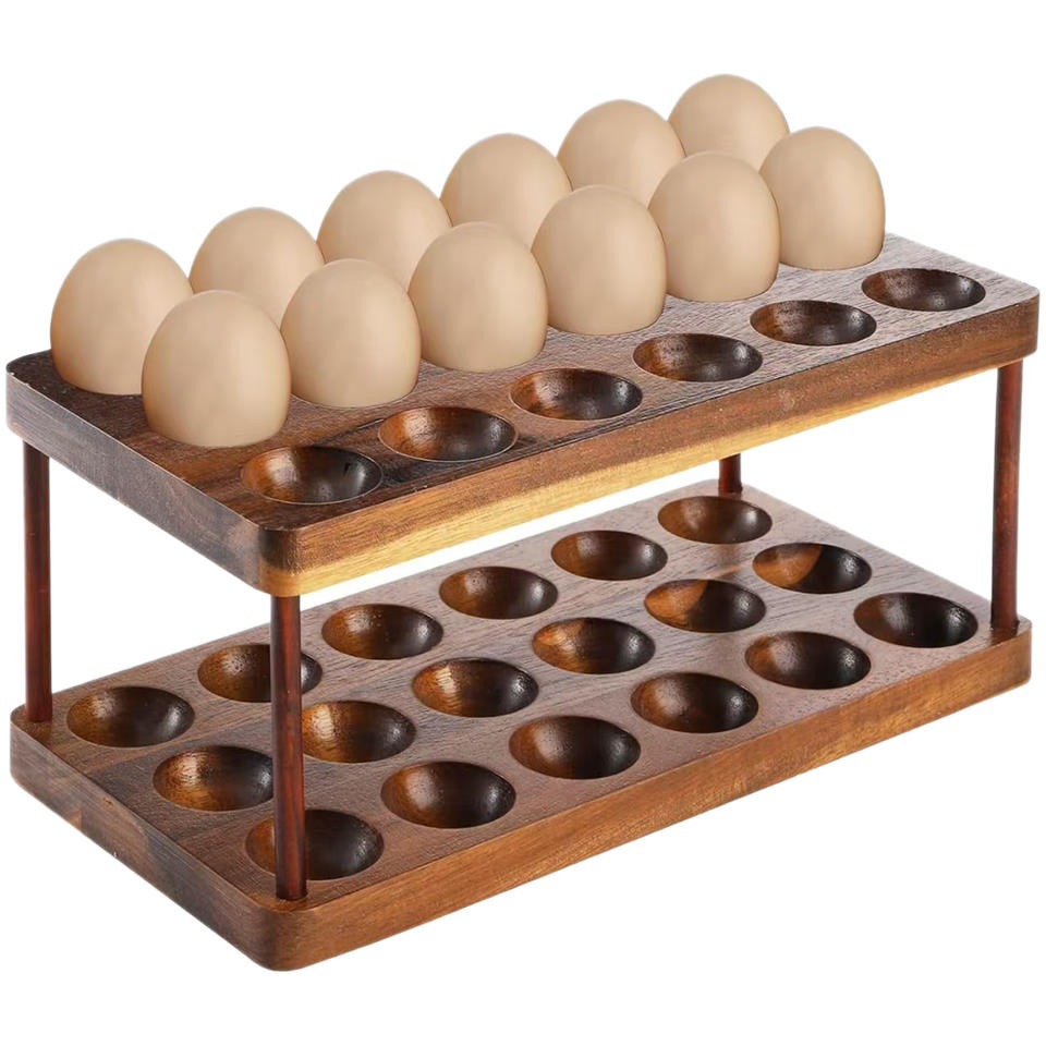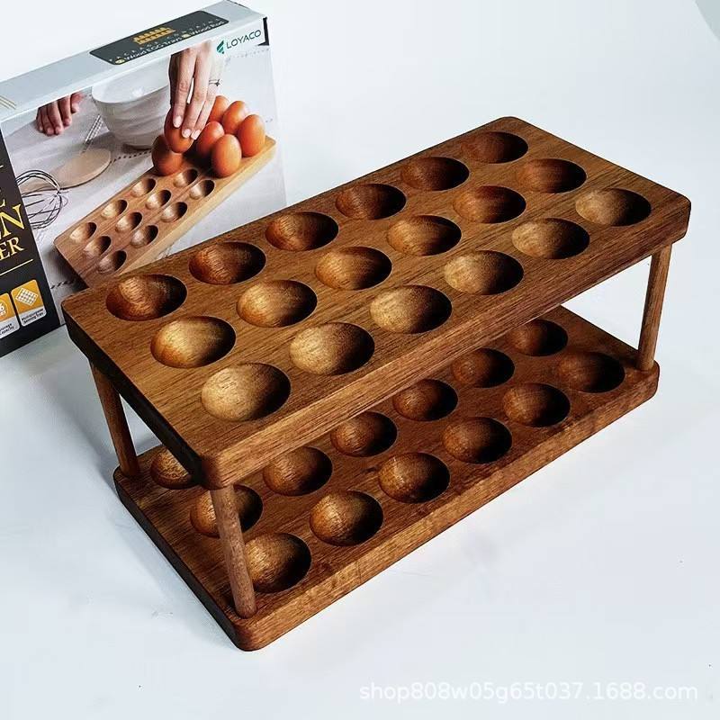 ชั้นวางไข่ไม้ 2 ชั้น ตู้เก็บรักษาความสดจากไม้เนื้อแข็ง สำหรับใช้ในครัวเรือน