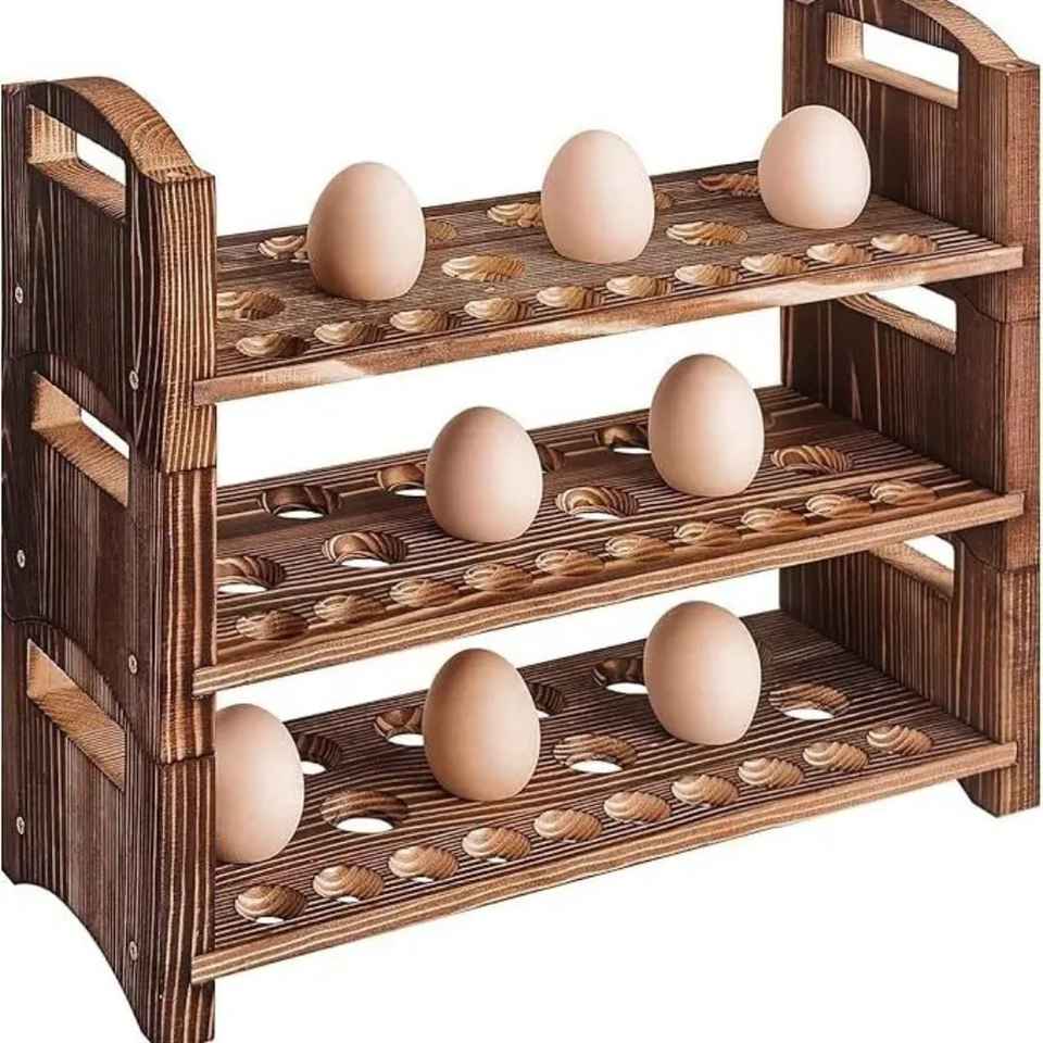 ถาดใส่ไข่ไม้ ด้ามจับยาว ถาดเสิร์ฟไข่ดาว ที่วางไข่ อุปกรณ์จัดระเบียบไข่ในครัว ถาดเสิร์ฟสไตล์เรียบง่าย เป็นมิตรกับสิ่งแวดล้อม