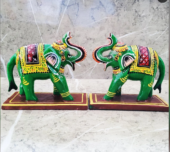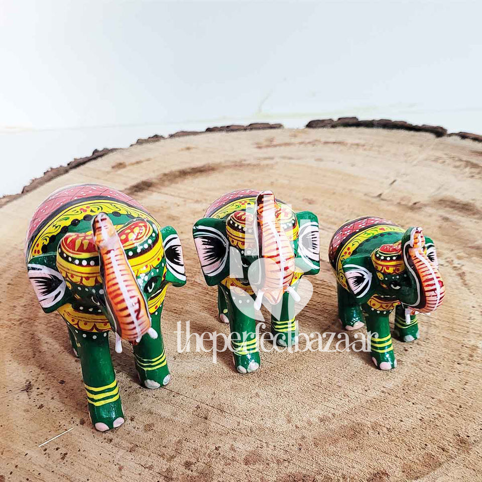 ชุดงานฝีมือไม้รูปช้างสไตล์อาร์ตเดโค จำนวน 3 ชิ้น