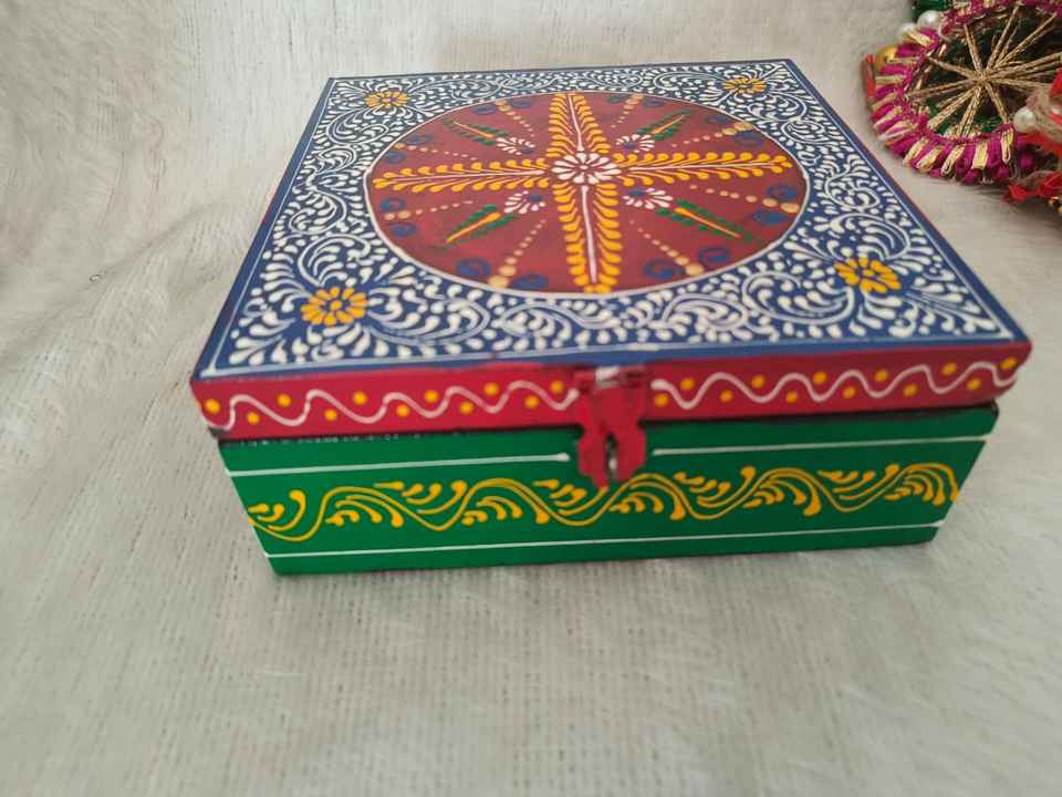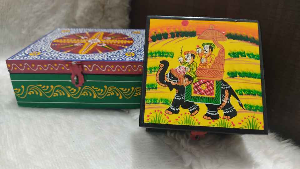 ช้างไม้พิมพ์มือทาสีกล่องเครื่องประดับผลไม้แห้งกล่องสําหรับตกแต่งบ้านอินเดียที่ไม่ซ้ํากันของขวัญสําหรับDiwali Eid Ramadanโปรดปราน