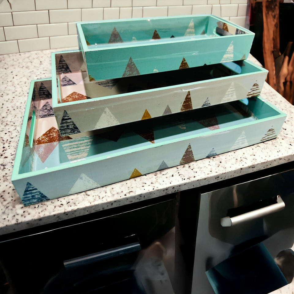 ชุดถาดเสิร์ฟไม้รีไซเคิลได้หรูหราเป็นมิตรต่อสิ่งแวดล้อมทำด้วยมือพร้อมรหัสเคลือบ