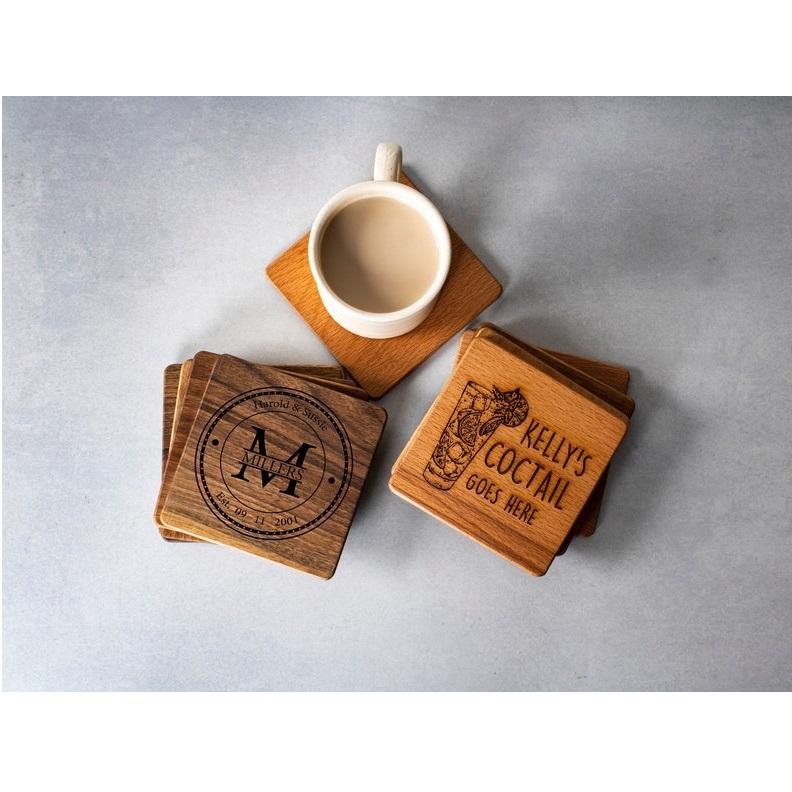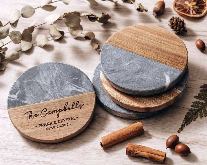 ที่รองแก้วไม้แกะสลักเป็นของขวัญแต่งงานสำหรับแขกผู้เข้าพักแผ่นรองแก้วทรงกลมทำจากธรรมชาติ2023