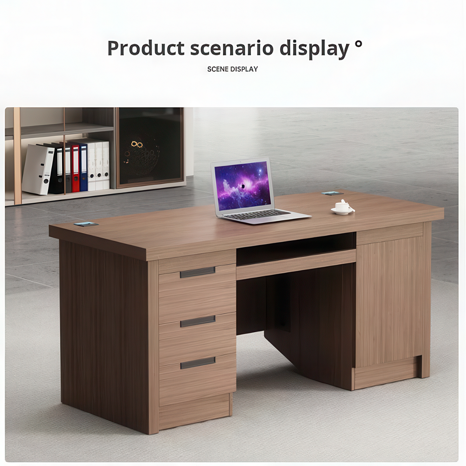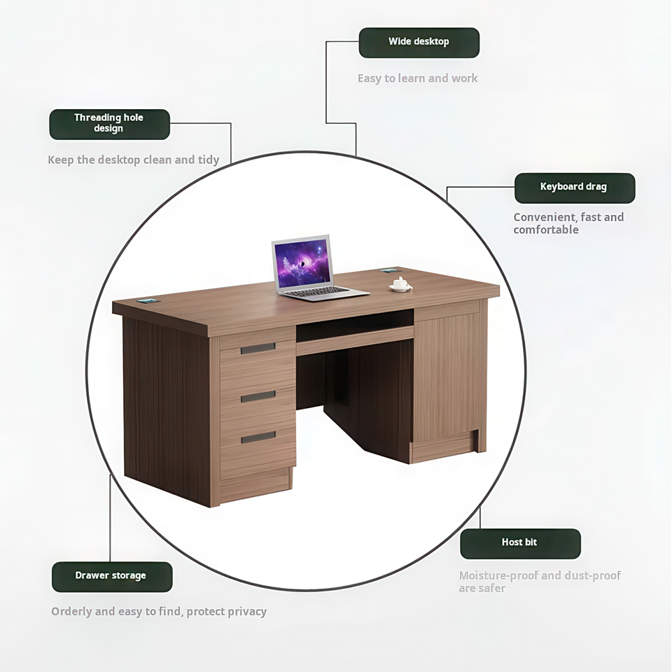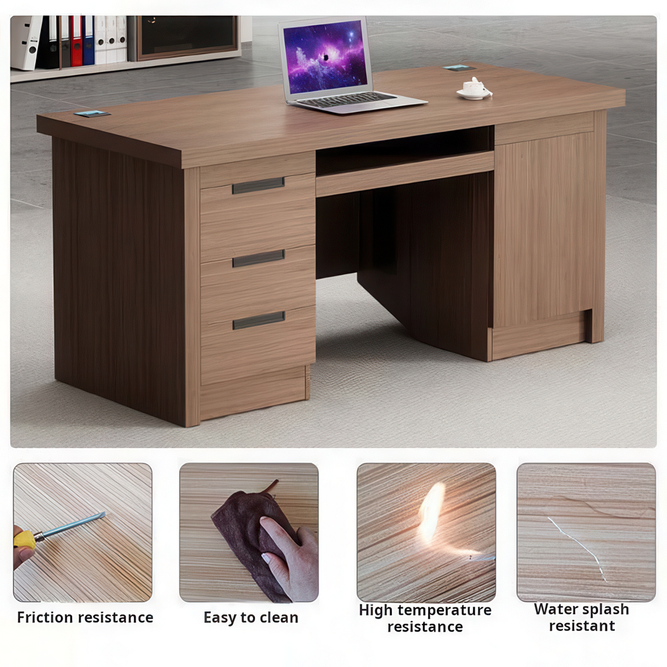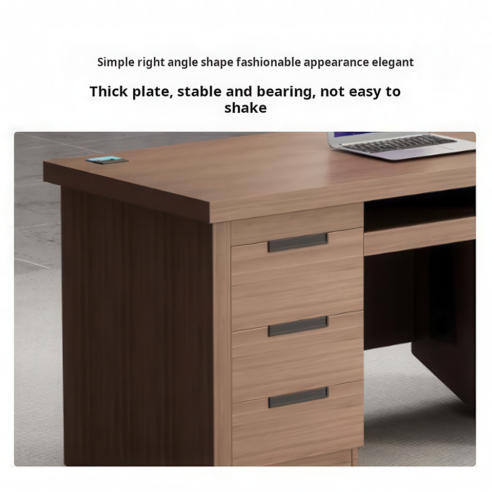 โต๊ะทำงานผู้บริหารไม้พร้อมลิ้นชัก โต๊ะคอมพิวเตอร์เดี่ยวพร้อมถาดวางคีย์บอร์ดและตู้เก็บของสำหรับผู้จัดการ