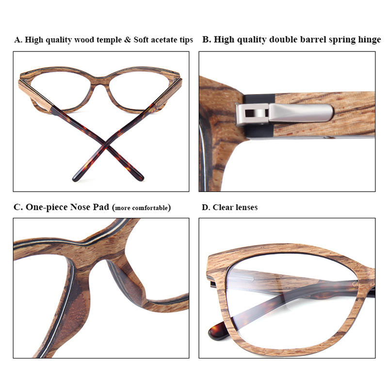 Wooden Eyeglasses Frames Rectangle Full-Frame Eco-Friendly Men's Plano Lenses PC Material Wenzhou Origin Part Number 6022
