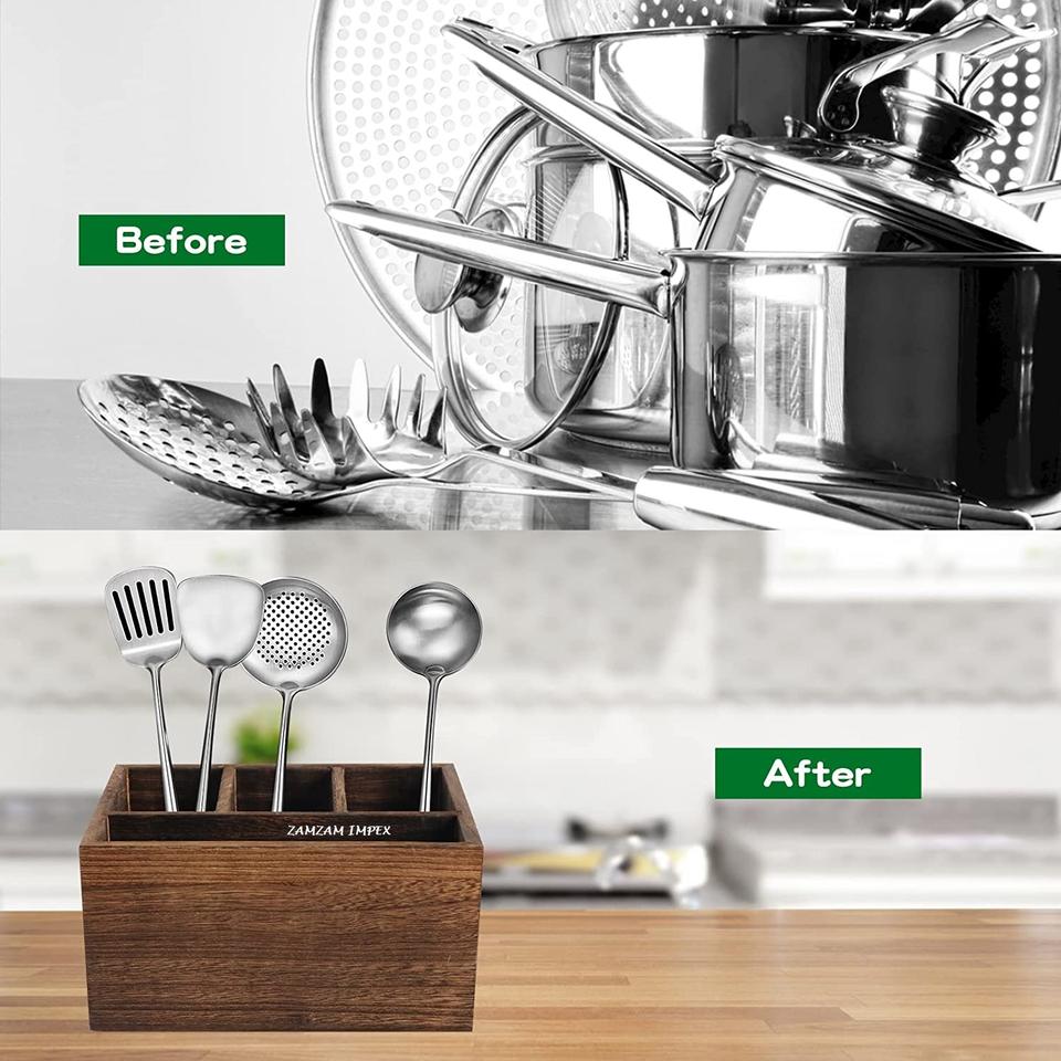 ที่ใส่ของใช้ในครัวสไตล์บ้านไร่ทำด้วยมือแบบชนบทอุปกรณ์จัดระเบียบสำหรับช้อนส้อมและเครื่องมือทำอาหาร