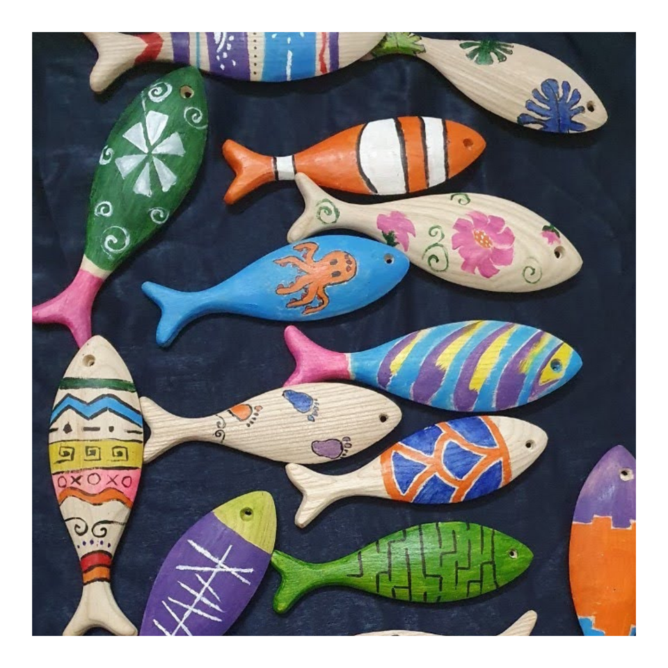 ปลาทำด้วยมือจากไม้ธรรมชาติแกะสลักอย่างดีสำหรับการสวดมนต์ของชาวพุทธหรือการตกแต่งบ้าน