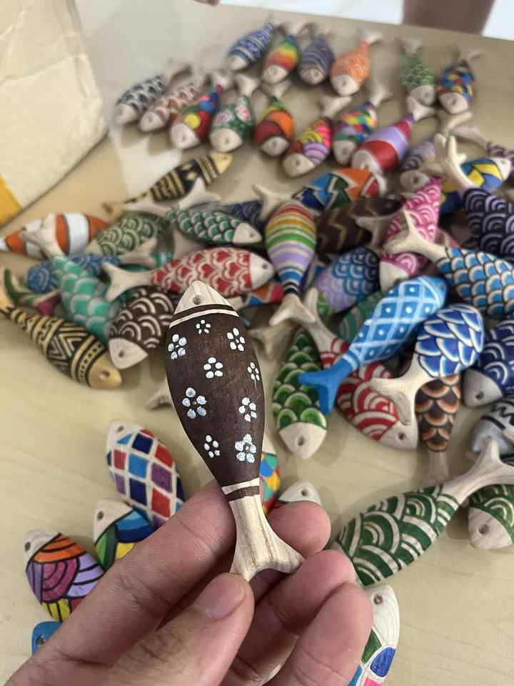 รูปปั้นปลาทำจากไม้ธรรมชาติเพิ่มความสวยงามให้กับการตกแต่งบ้านที่เหมาะสำหรับห้องนั่งเล่น