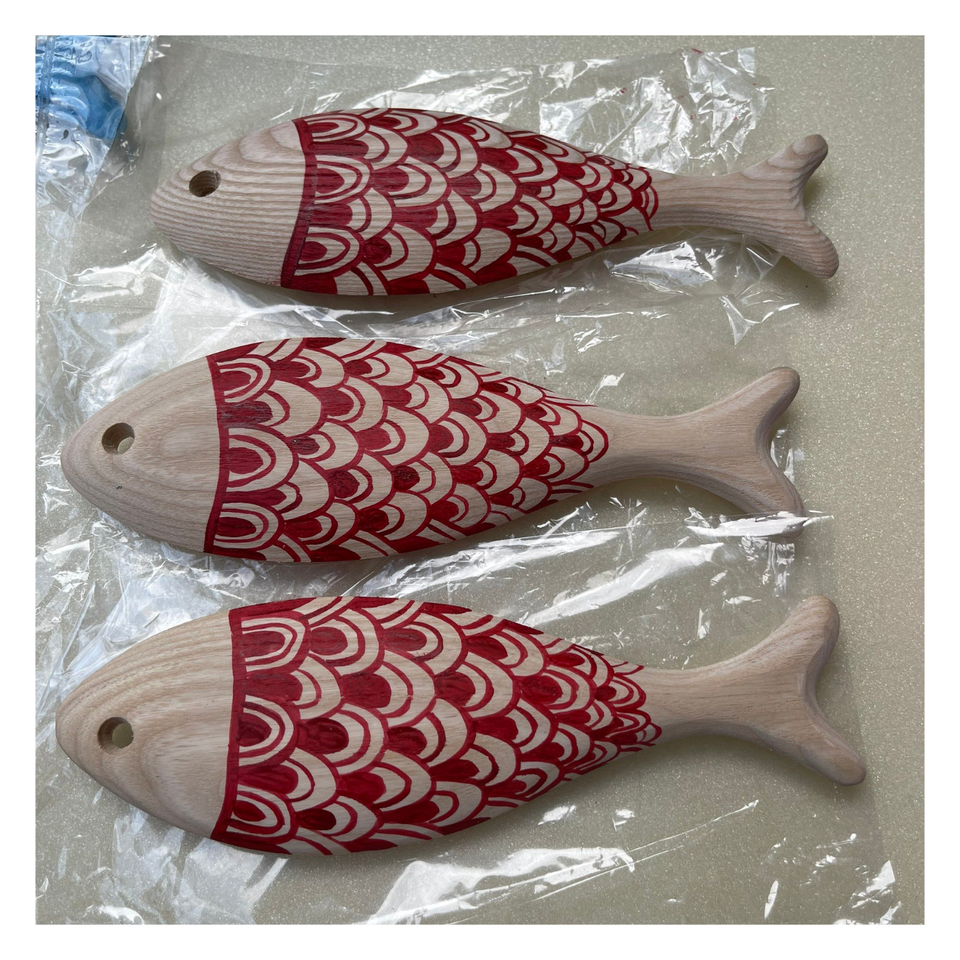 ปลาไม้ที่มีลวดลายแกะสลักแบบดั้งเดิมเหมาะสำหรับพิธีสวดมนต์ทุกวันและใช้ในอาราม