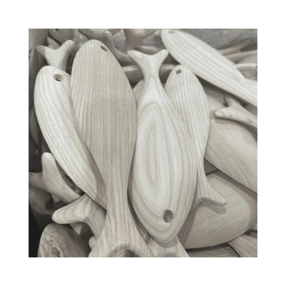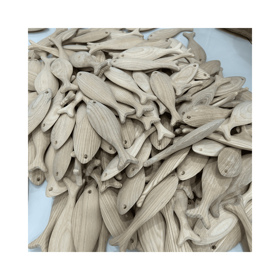 ไม้แกะสลักรูปปลาไม้สนแบบพกพาพร้อมที่แขวนปอกระเจาสำหรับตกแต่งระเบียงและแผงขายของตลาดงานฝีมือที่เน้นการเดินเรือในเวียดนาม