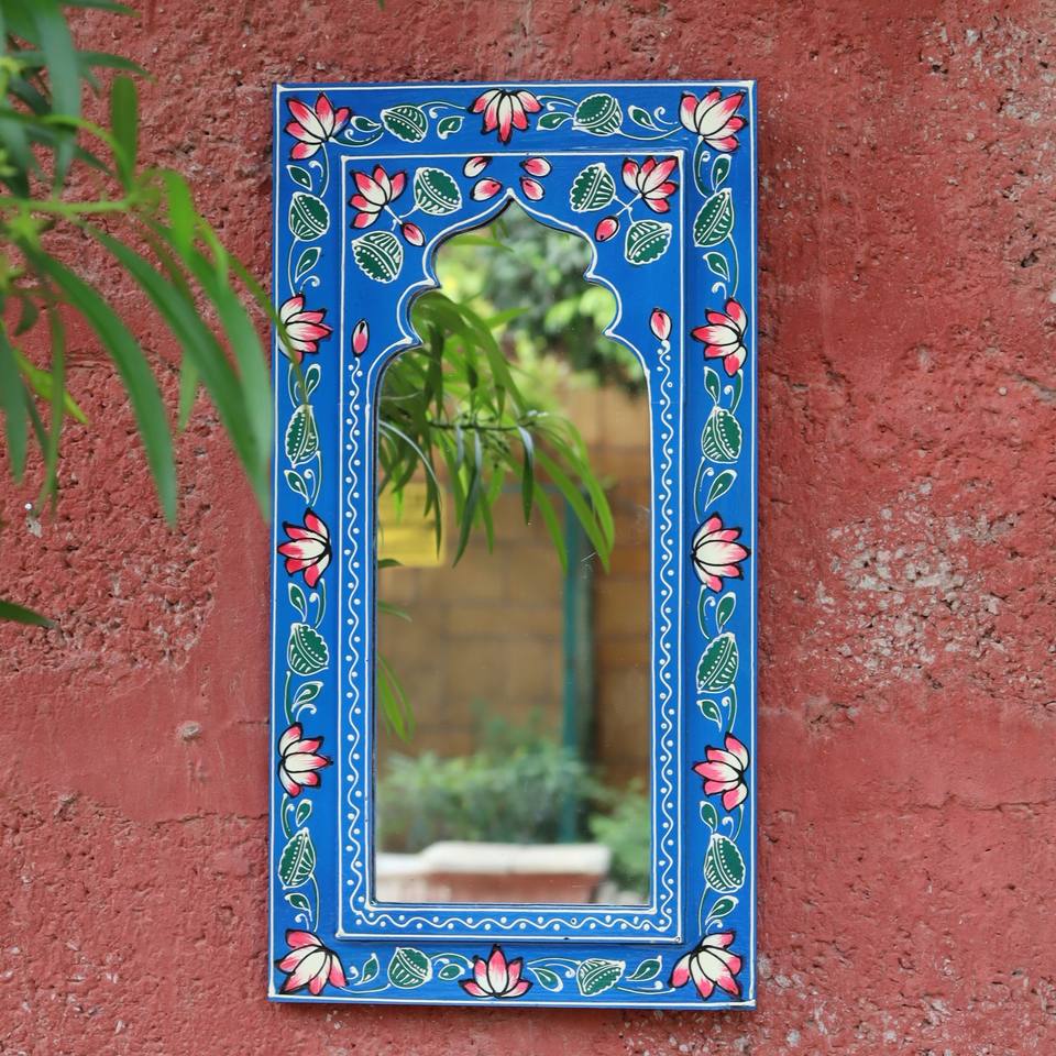 กระจกติดผนังภาพวาดด้วยมือทำจากไม้