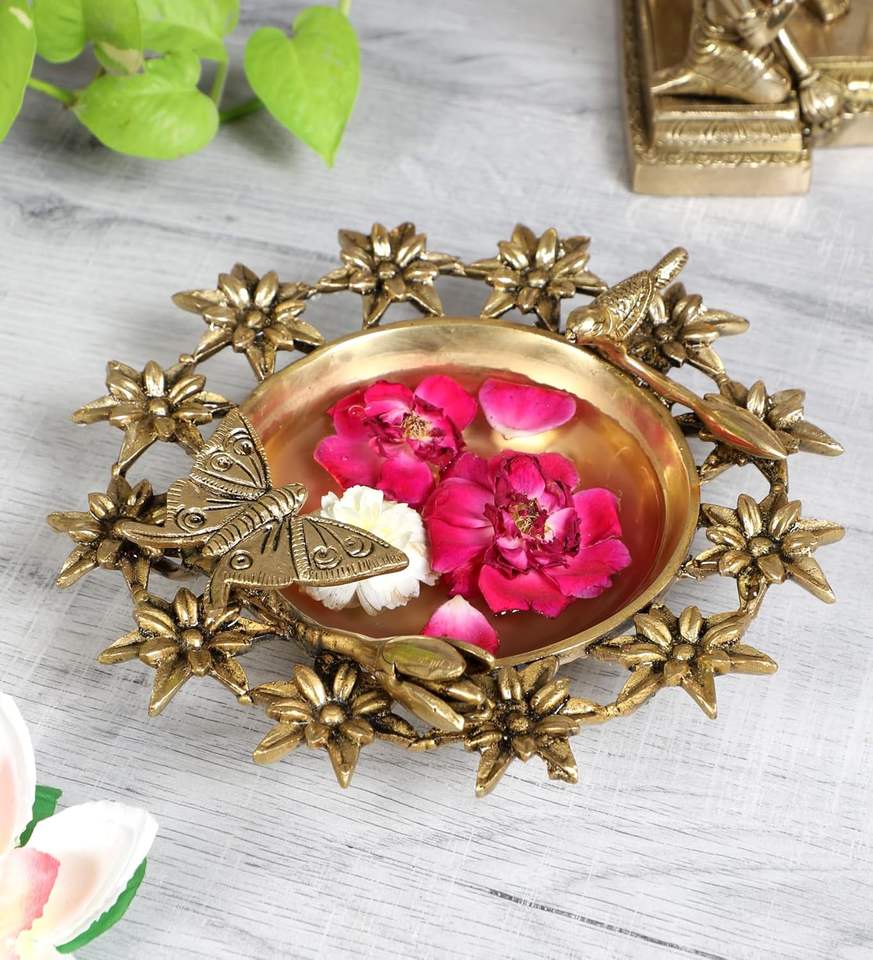 แจกันดอกไม้ไม้สีน้ำตาลแบบดั้งเดิม ประดับด้วยทองเหลืองลายดอกไม้ กระถางต้นไม้และกระถางปลูกต้นไม้ ของตกแต่งบ้าน กระถางลายแกะสลัก