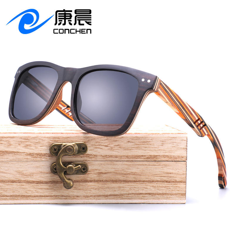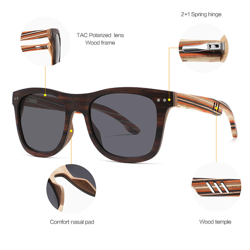 แว่นกันแดดกรอบไม้ ยูวี 400 โพลาไรซ์ TAC เลนส์ทรงสี่เหลี่ยมสำหรับป้องกันแสงแดดการเดินทางขับรถ W3097