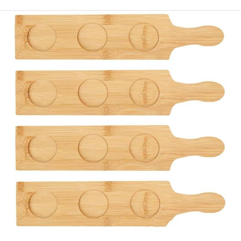 ที่วางแก้วไม้พร้อมที่จับ ถาด 3 ช่อง สำหรับบาร์ วิสกี้ ค็อกเทล ใช้เสิร์ฟในร้านอาหาร ถาดไม้เนื้อแข็งสำหรับวางบนโต๊ะ