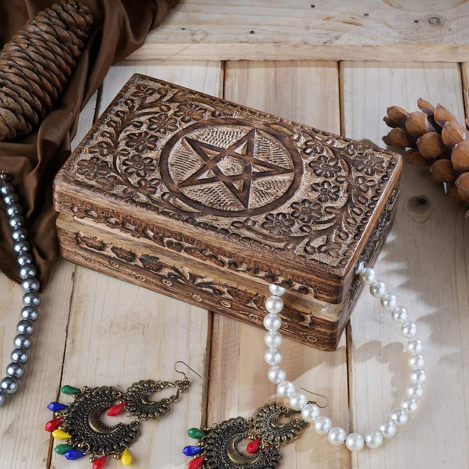 กล่องไม้แกะสลักมือสำหรับตกแต่งเครื่องประดับแกะสลักรูปดาวที่เก็บของชำร่วยสไตล์วินเทจที่เก็บสมบัติการเดินทางผู้ถือเครื่องประดับเล็กๆน้อยๆ