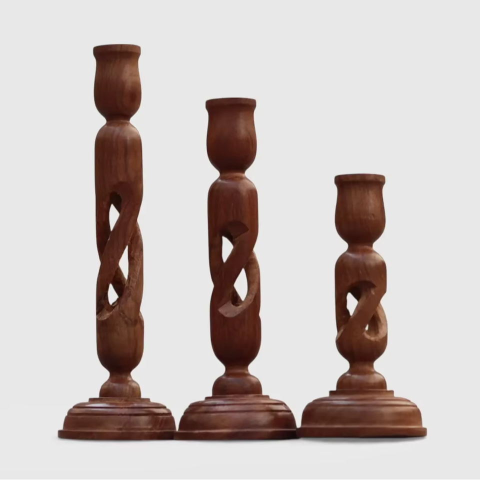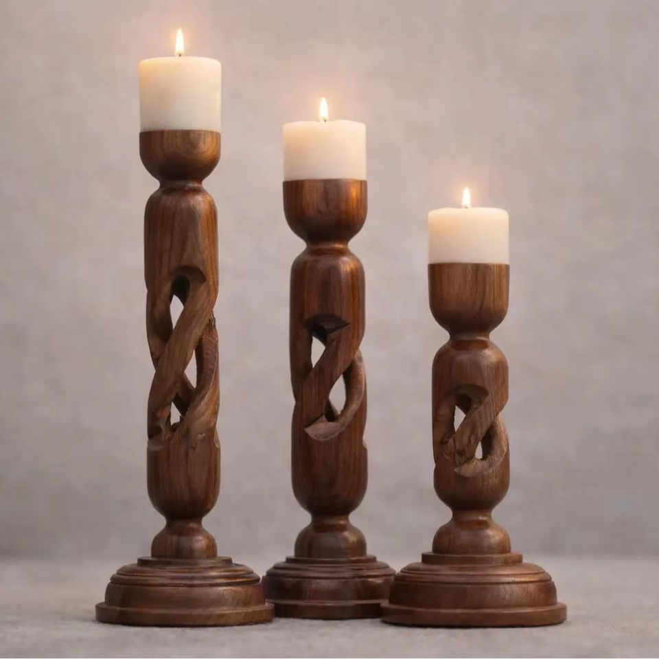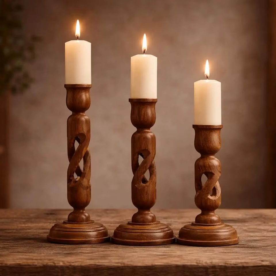 ชุดเชิงเทียนไม้แกะสลักด้วยมือ เป็นมิตรกับสิ่งแวดล้อม ตกแต่งบ้านสไตล์ชนบท สำหรับเทียนทรงกระบอก ของตกแต่งกลางโต๊ะคริสต์มาส