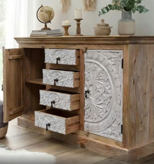 ตู้ข้างโซฟาไม้แกะสลักด้วยมือแบบดั้งเดิม สีขาว เป็นมิตรกับสิ่งแวดล้อม ปรับเปลี่ยนได้ ใช้ในห้องนั่งเล่น ดีไซน์ทันสมัย
