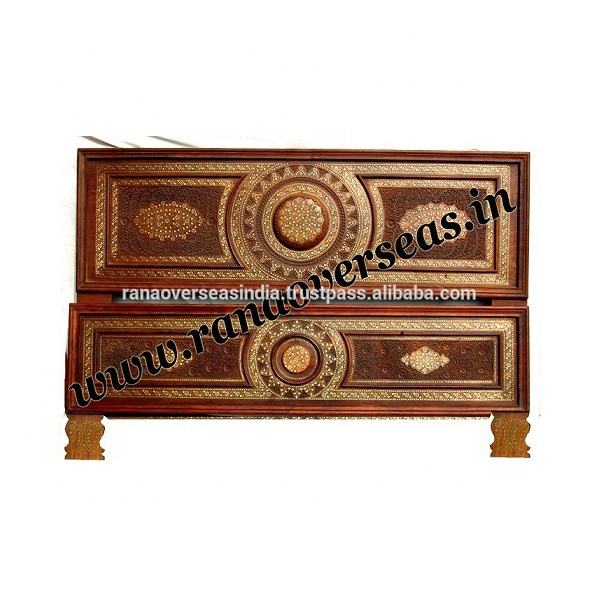 เตียงคู่ทำด้วยมือทำจากไม้ดีไซน์หรูหราสลักทองเหลือง
