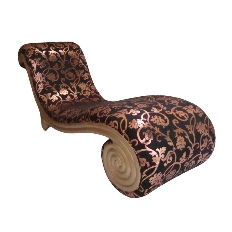 เก้าอี้พักผ่อนไม้ทำมือหุ้มเบาะสไตล์ฝรั่งเศส รุ่นคลาสสิคสีทอง รูปทรงหอยทาก