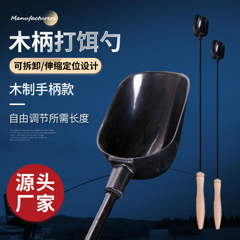 ช้อนใส่เหยื่อแบบด้ามไม้ สีดำ ยาว 30 ซม. สำหรับตกปลาคาร์พในน้ำจืด อุปกรณ์กระจายเหยื่อ