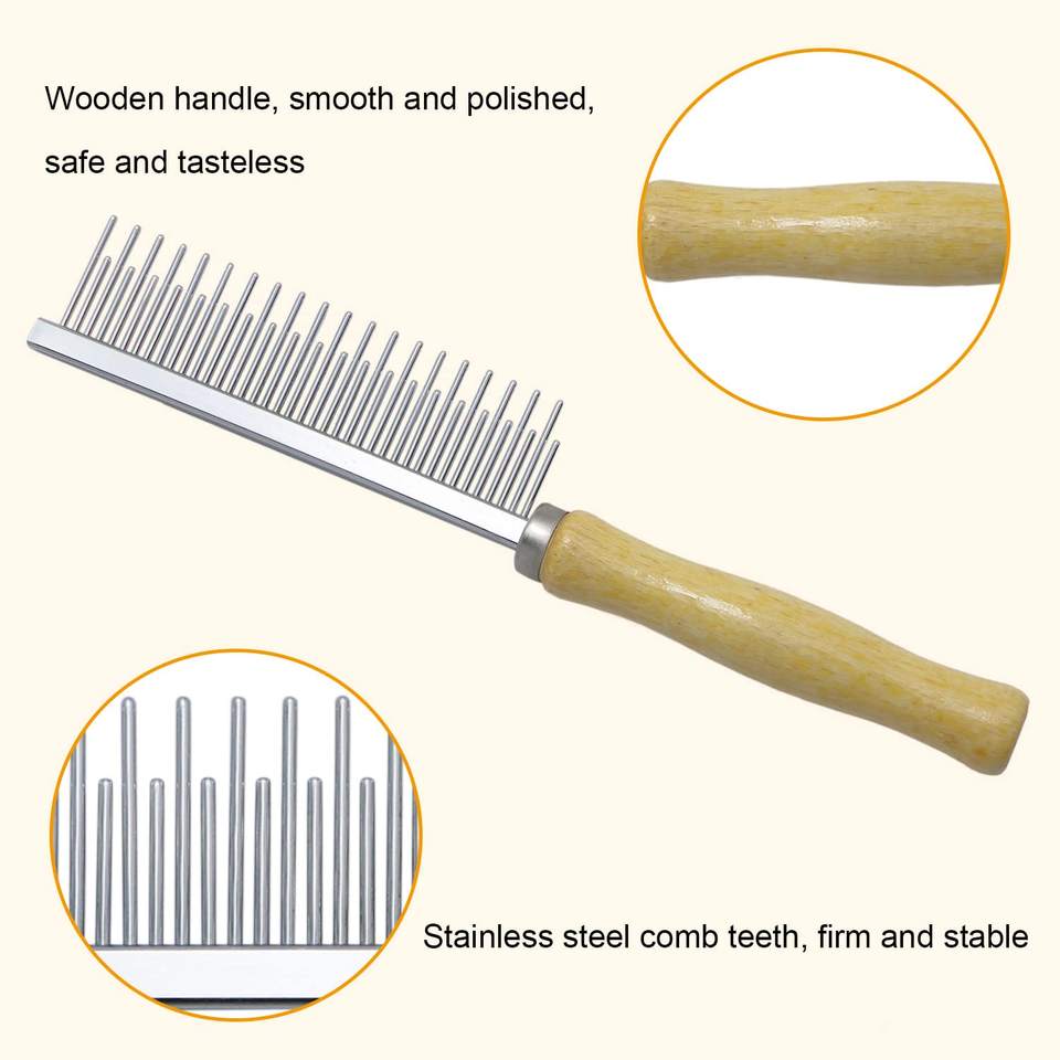 หวีแปรงขนสัตว์เลี้ยงด้ามจับทำจากไม้สำหรับสุนัขแมวสัตว์เลี้ยง