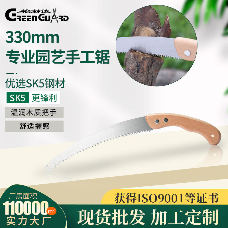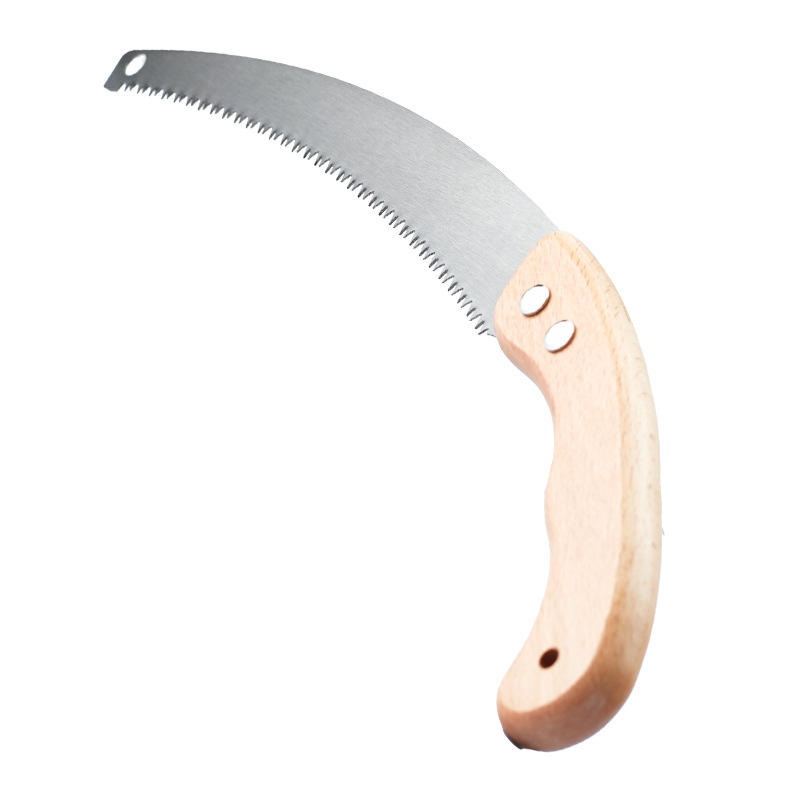 เลื่อยมือด้ามไม้ ใบเลื่อยเหล็กคาร์บอนสูง คมโค้ง สำหรับตัดแต่งกิ่งไม้ในสวน ต้นไม้ผลไม้ ใช้งานกลางแจ้ง