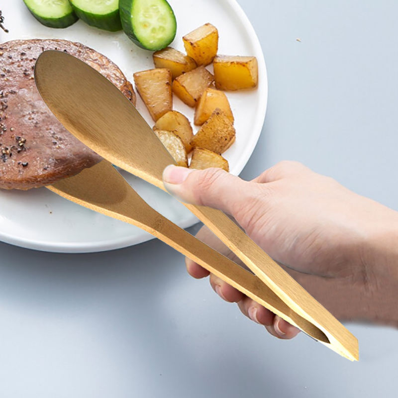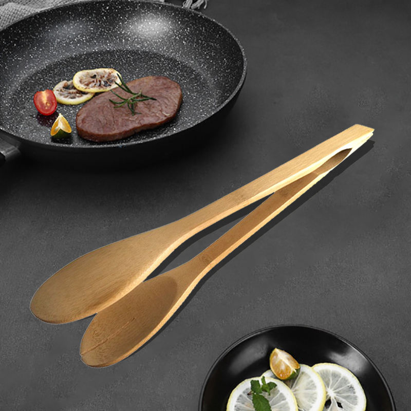ชุดเครื่องครัวด้ามไม้กันลื่นที่คีบบาร์บีคิวสำหรับทำอาหารเชฟของขบเคี้ยวสำหรับสลัดหมูสับขนมปังทอดปลอดภัย
