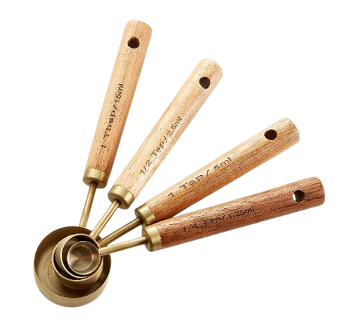 ช้อนตวงด้ามไม้ตักชาเขียวเครื่องมือวัดในครัวทำจากสเตนเลสสตีลช้อนตวงสีทอง