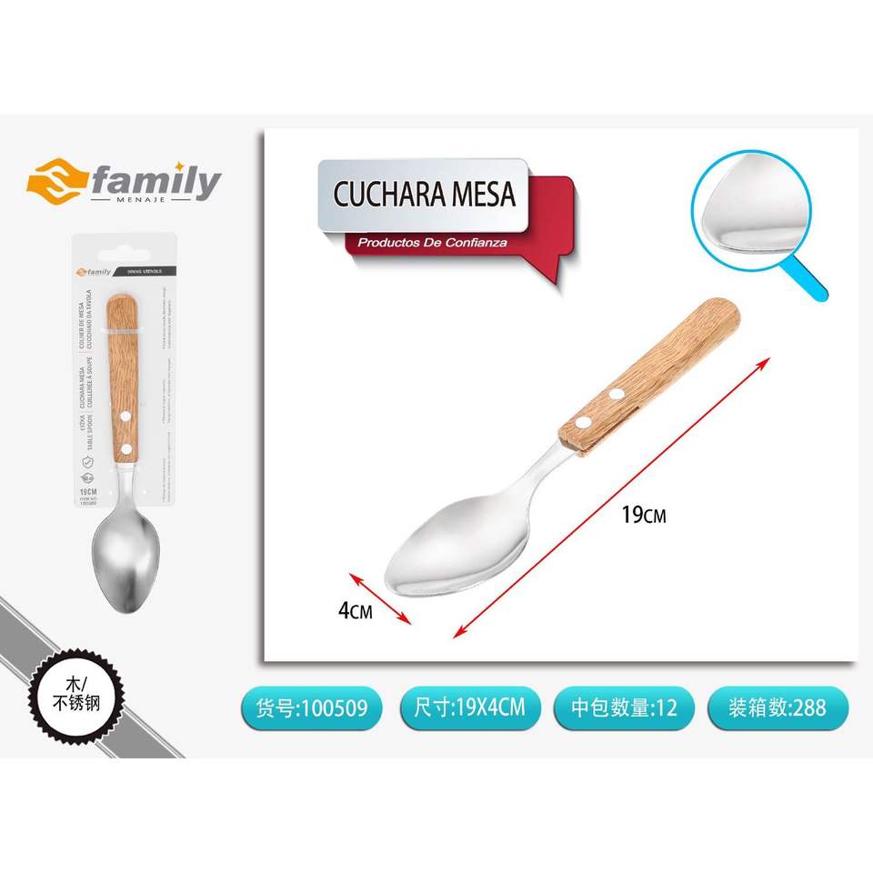 ช้อนตักอาหารสำหรับครอบครัว 19 ซม. ด้ามไม้ สแตนเลส อุปกรณ์ครัว