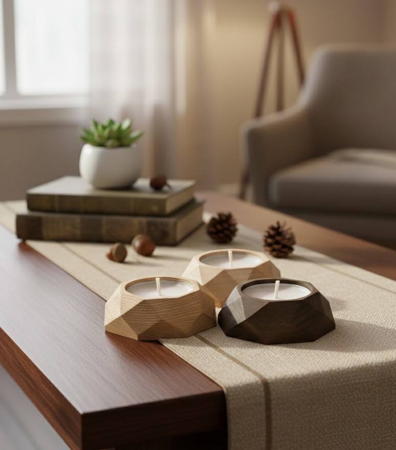 ที่วางเทียนรูปหกเหลี่ยมทำมือจากไม้ สำหรับตกแต่งบ้าน ใช้ในงานคริสต์มาส อีสเตอร์ ปาร์ตี้ ฤดูหนาว