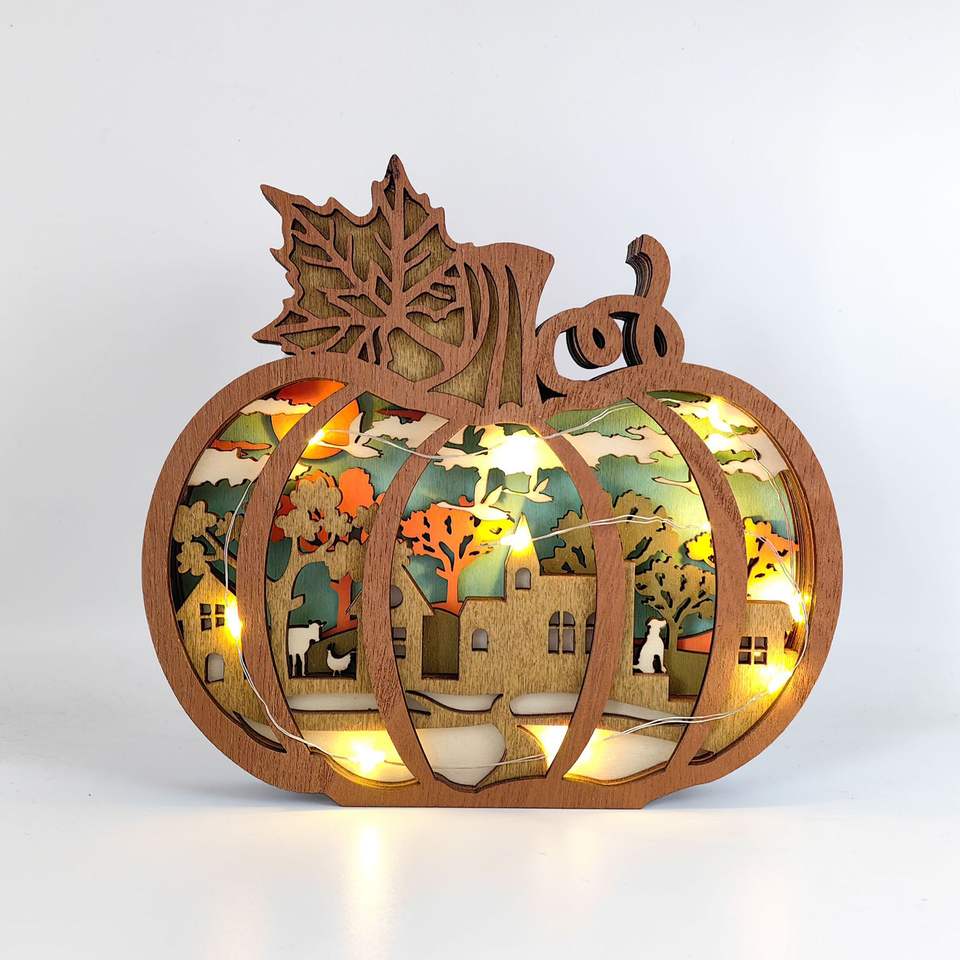 บ้านฟักทองงานขอบคุณพระเจ้าทำด้วยมือทำจากไม้แกะสลักหลายชั้นของตกแต่งโต๊ะในบ้าน1611 uionen