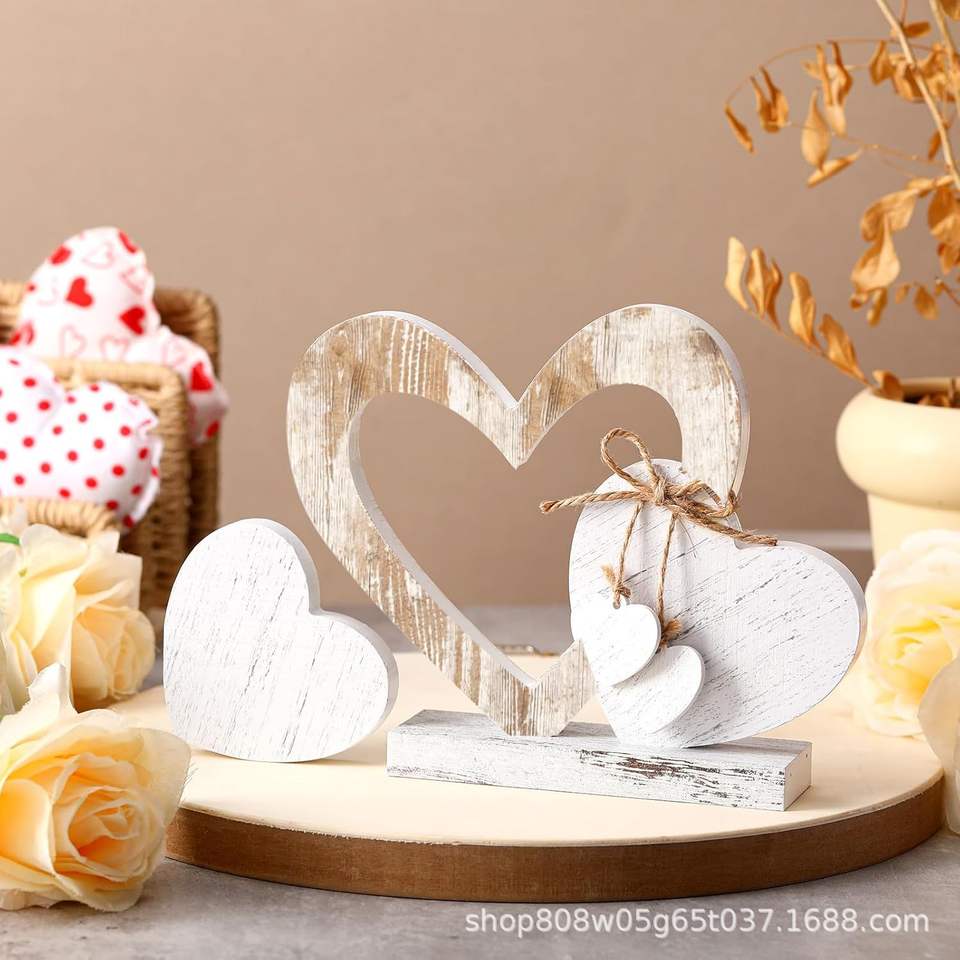 เครื่องประดับโต๊ะรูปหัวใจไม้ ของตกแต่งวันวาเลนไทน์ อุปกรณ์ประกอบฉากถ่ายรูป งานฝีมือไม้แท้ LY0506