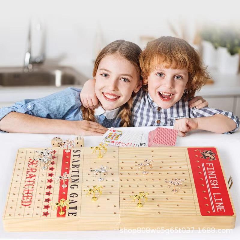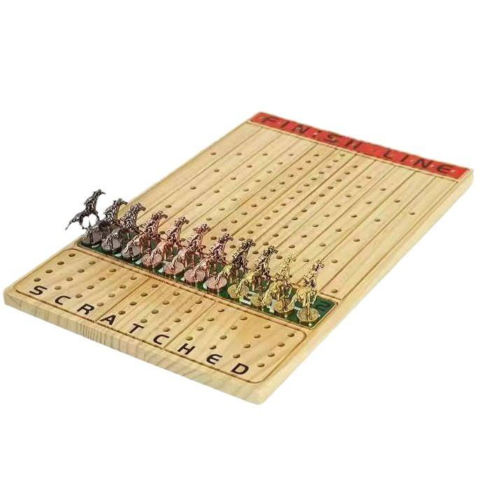 Wooden Horse Racing Game Board With Cards And Figurines For Kids And Adults Folding Design Natural Wood Color